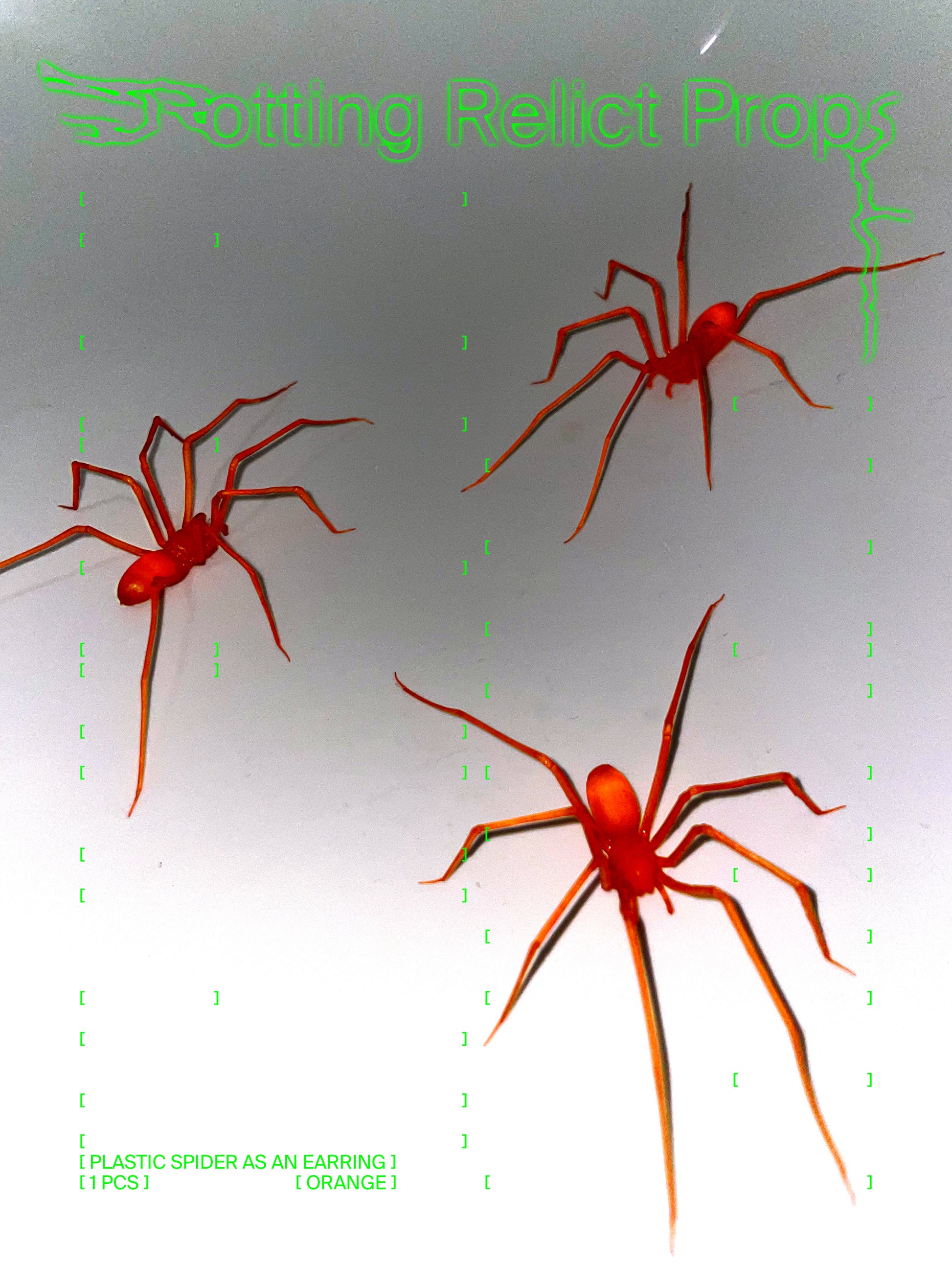 Handcrafted and hand-painted original plastic giant house spider + stainless steel stud earring in orange.