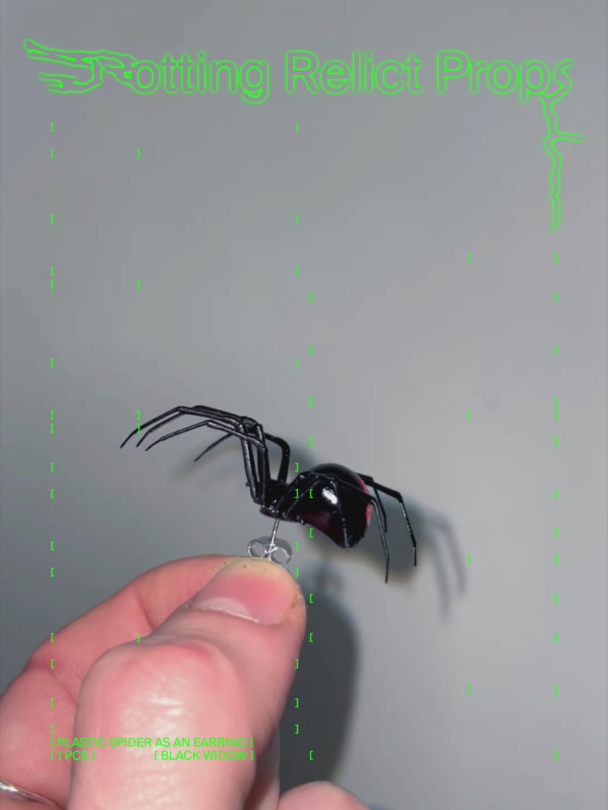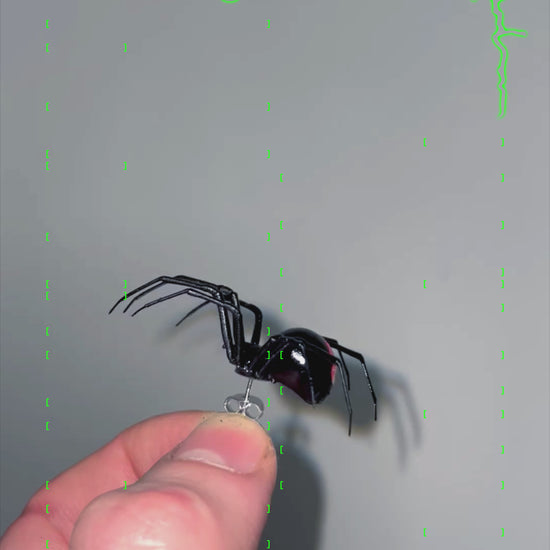 Handcrafted and hand-painted original plastic black widow spider + stainless steel stud earring.